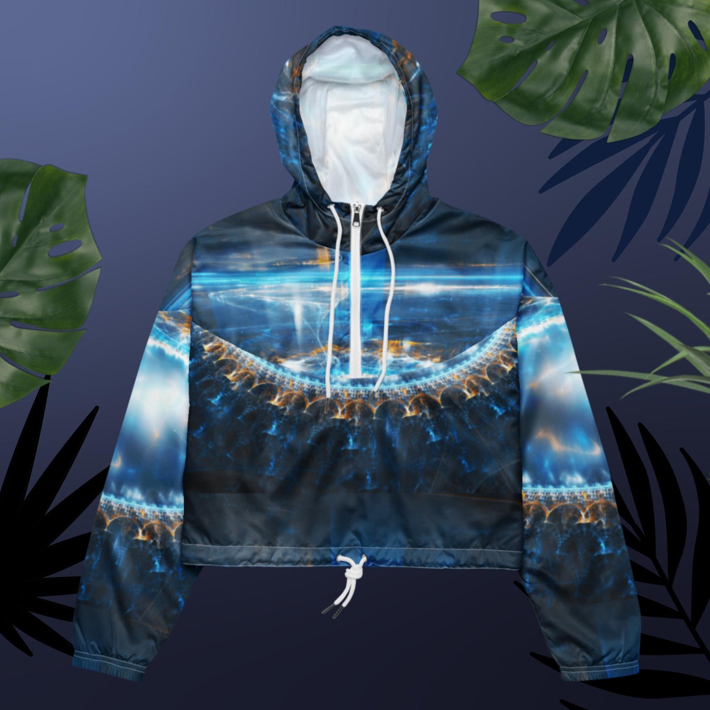 Hike in style without the rain getting in the way—this cropped windbreaker is lightweight, waterproof, and suitable for every kind of adventure. Features include side-slit pockets, breathable mesh lining, and adjustable drawcords on the hood and waist to support all your stylish outdoor looks.