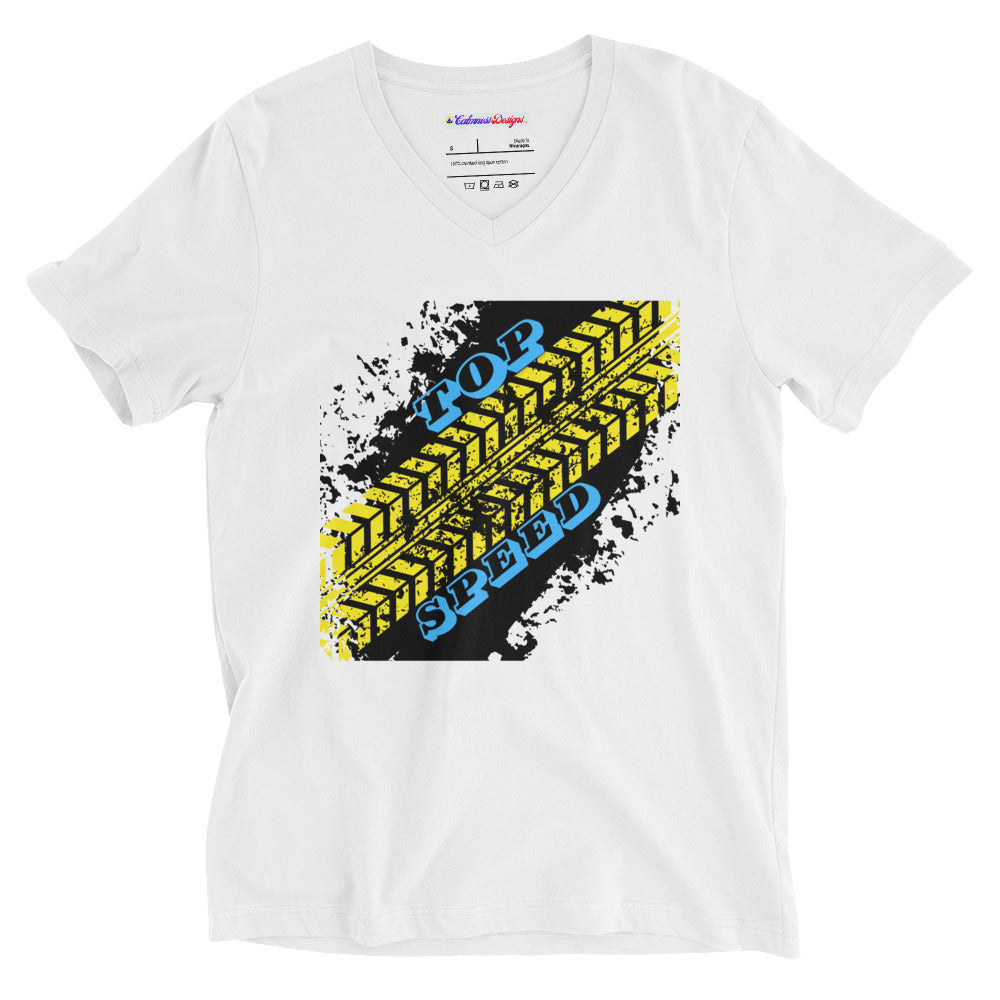 Car Tire Track, Top Speed, Calmnessdesign.COM, Unisex Short Sleeve V-Neck T-Shirt
