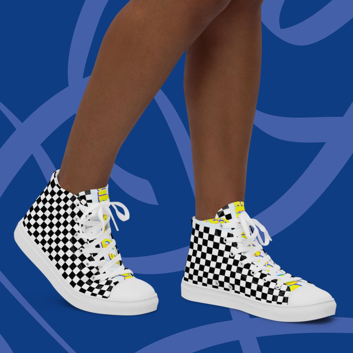 Checkered Calmness Designs, Women’s high top canvas shoes