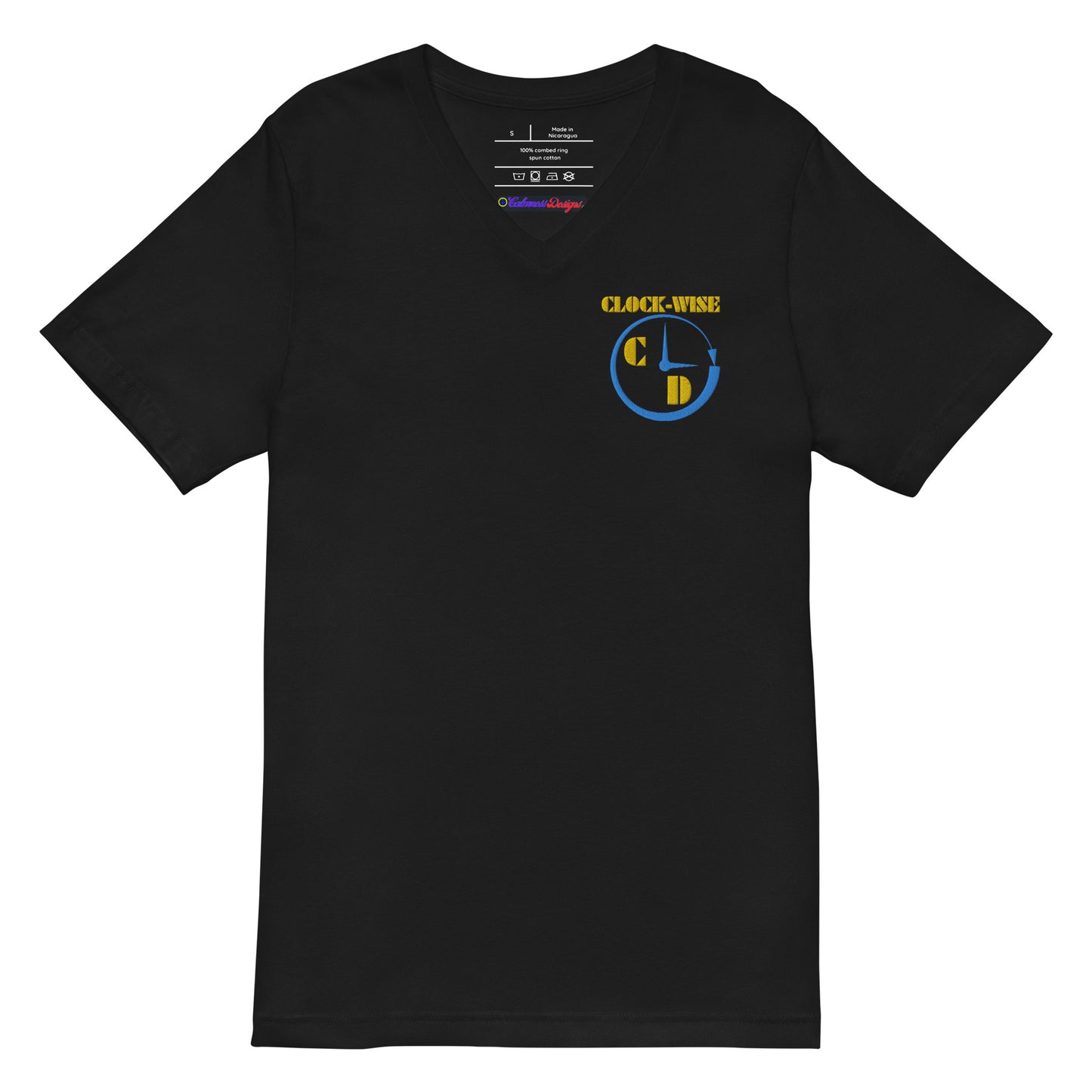 CLOCK-WISE, CLOCK, (C D), LOGO Calmness Designs, Unisex Short Sleeve V-Neck T-Shirt
