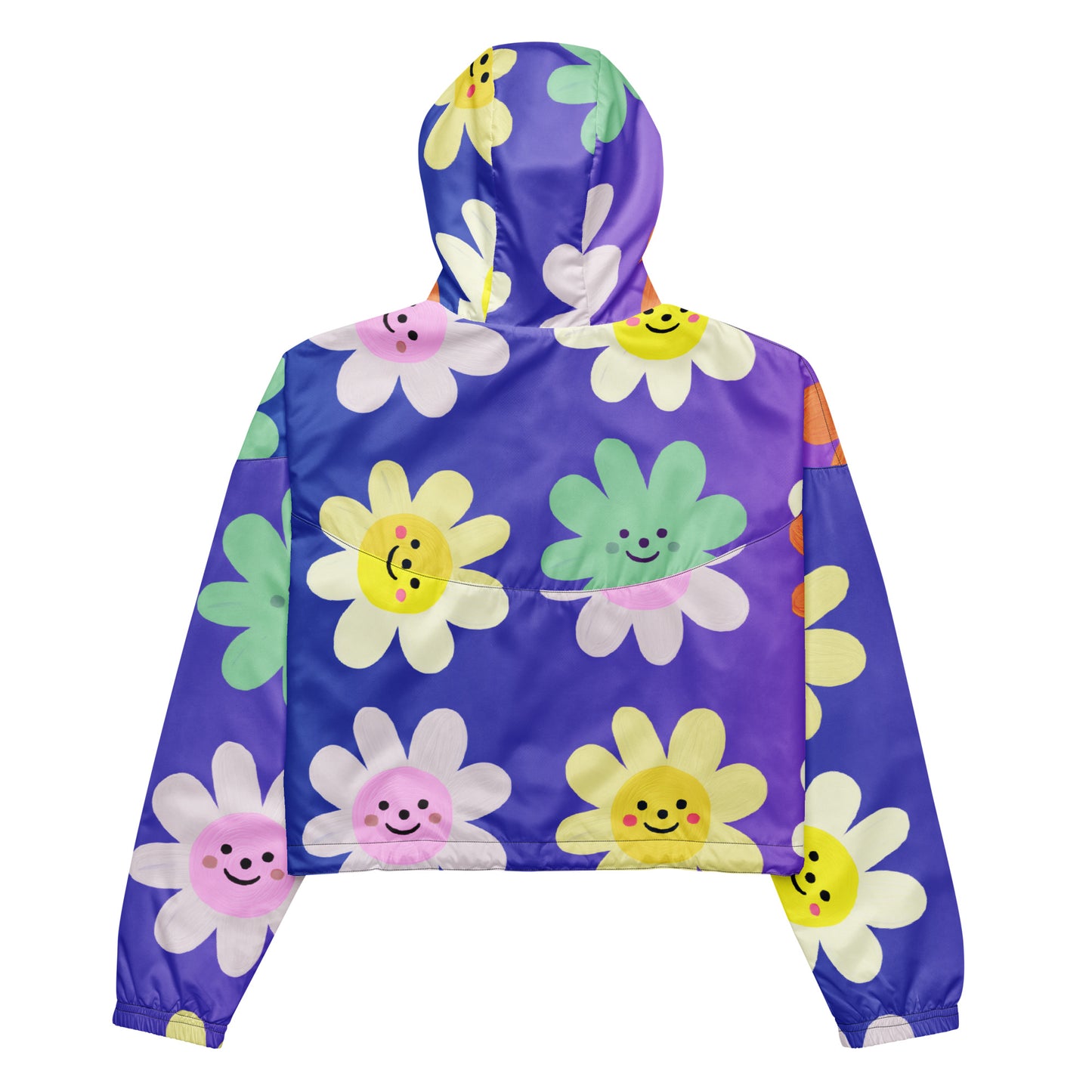 Cute Impasto Daisy flowers, CUTE-SMILY FACE Calmness Designs Women’s cropped windbreaker