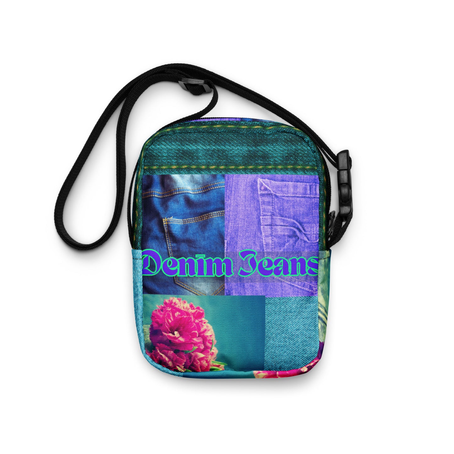 Denim Jeans, Flowers on Jeans, Calmness Designs, Utility crossbody bag