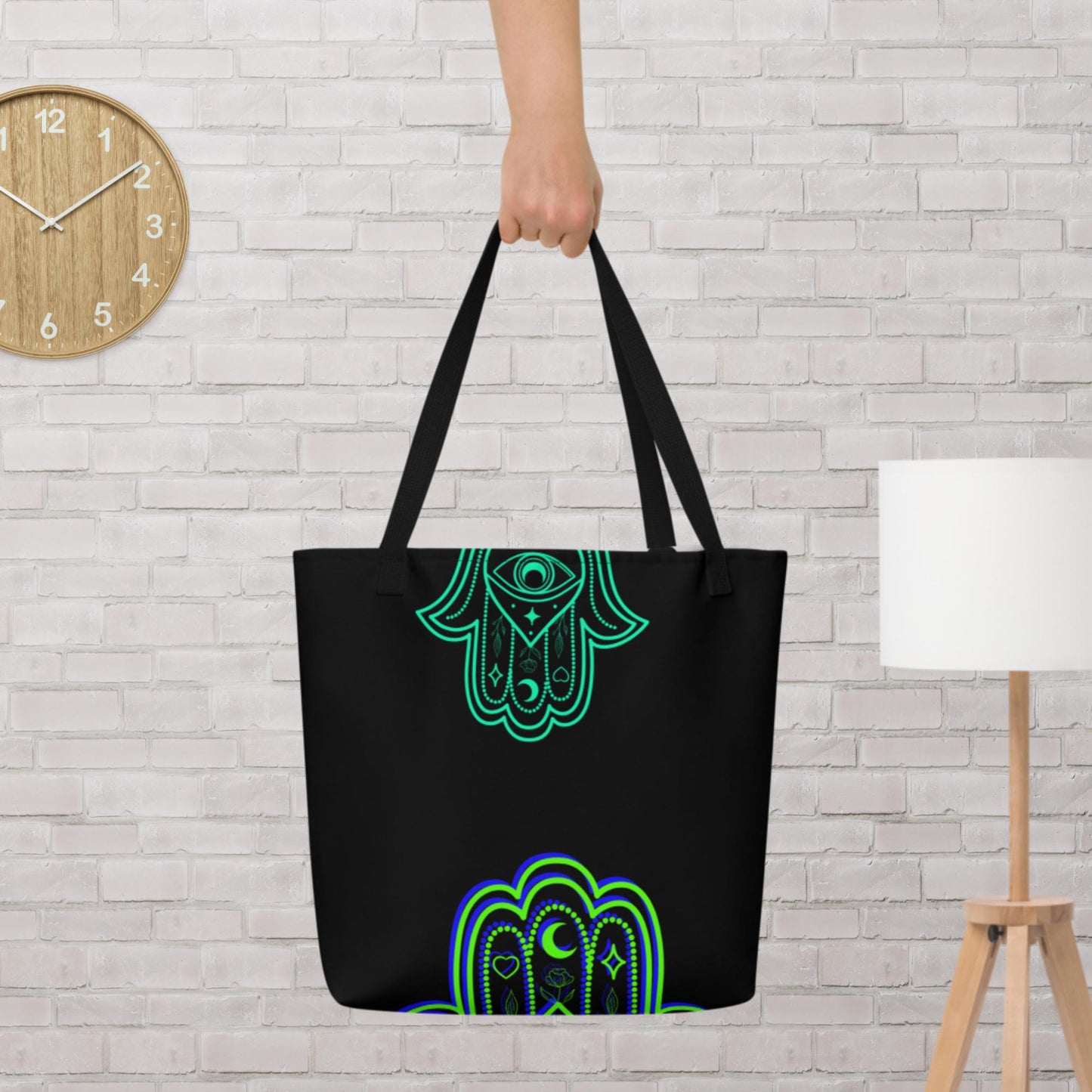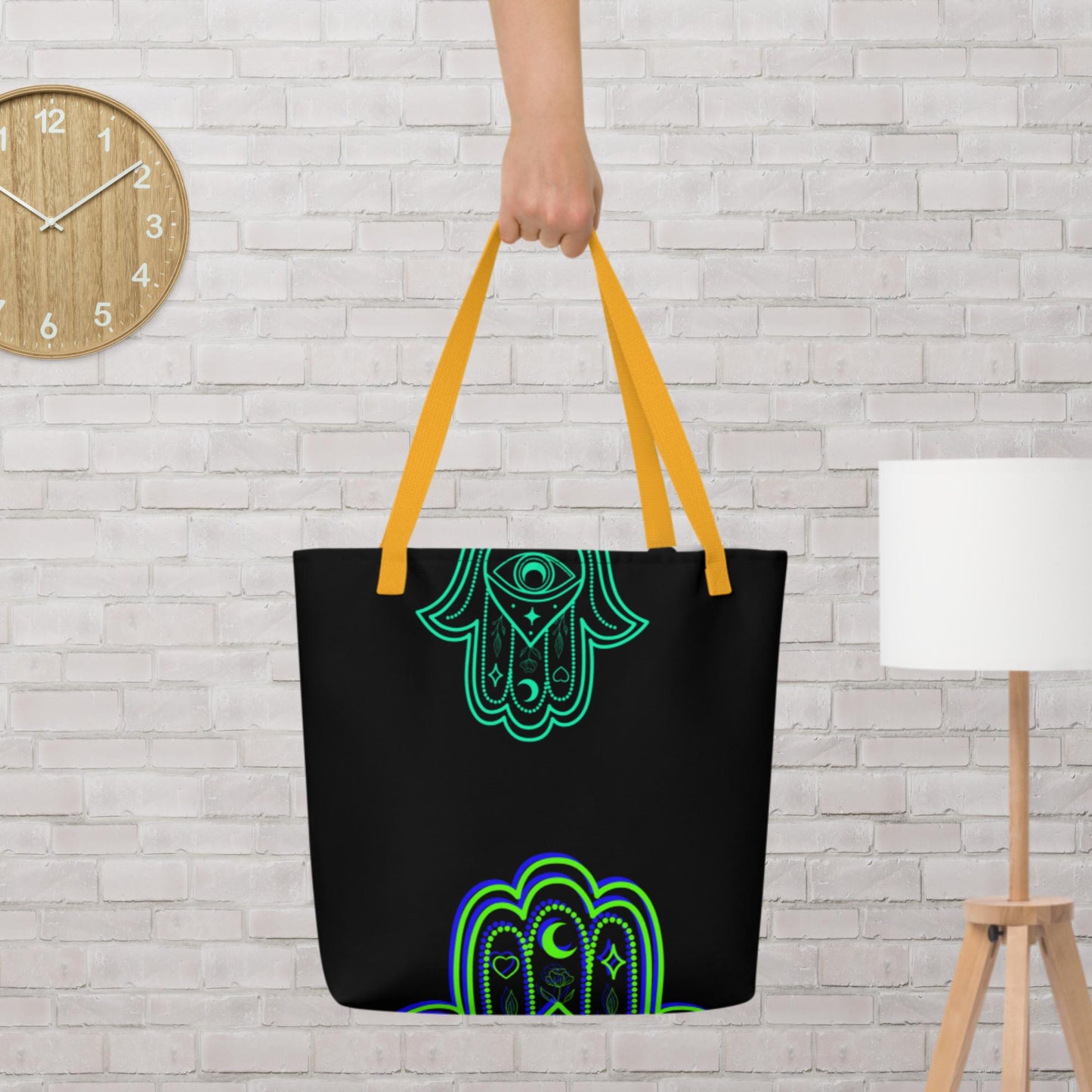 Desiign Hamsa Icon, for Protection,, All-Over Print Large Tote Bag