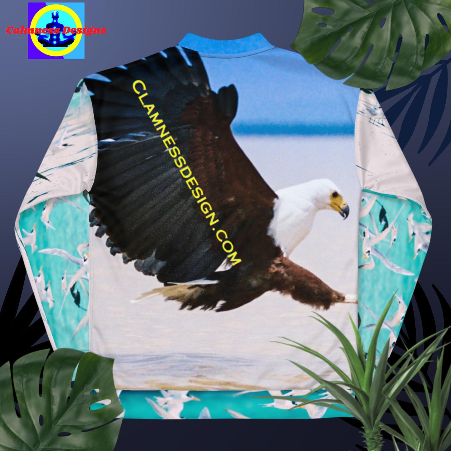 Eagle in Flight Catching it's Prey Fish Lake Bogoria Kenya Africa, Bomber Jacket