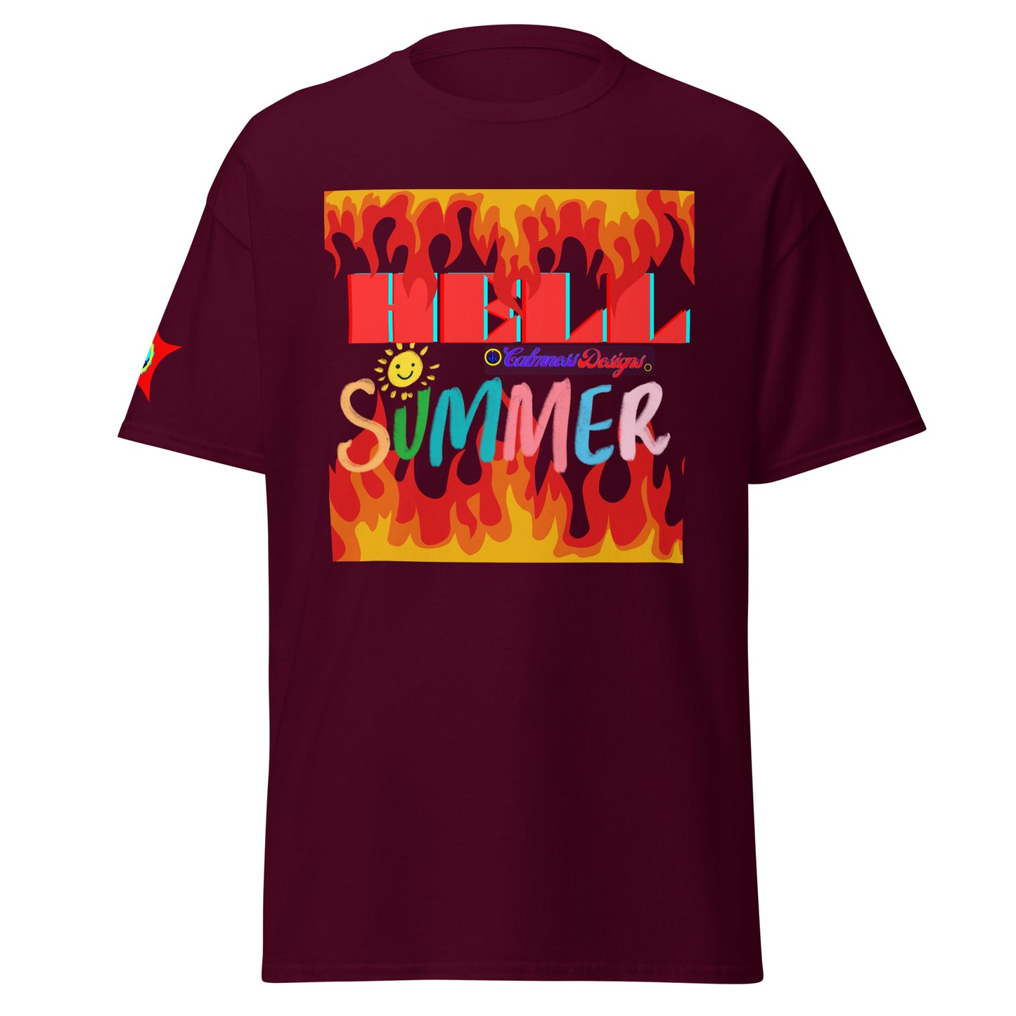 Fire Flame, Summer-Sunshine Face, HELL SUMMER, CALMNESS DESIGNS, Creative Designer's, Unisex classic tee