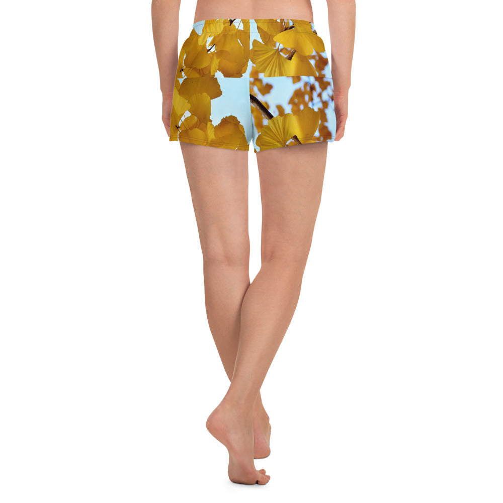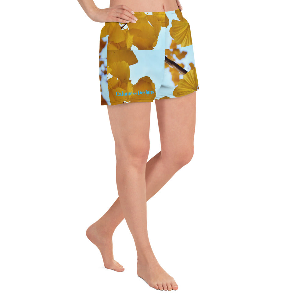 Ginkgo Tree Leaves, Calmness Designs, Designer's Styles, Creative Designs Creative, Genuine, Authentic, Calmness Designs, Great For Gifts, Design printed on all Apparels, Accessories, Homeware's. Women’s Recycled Athletic Shorts