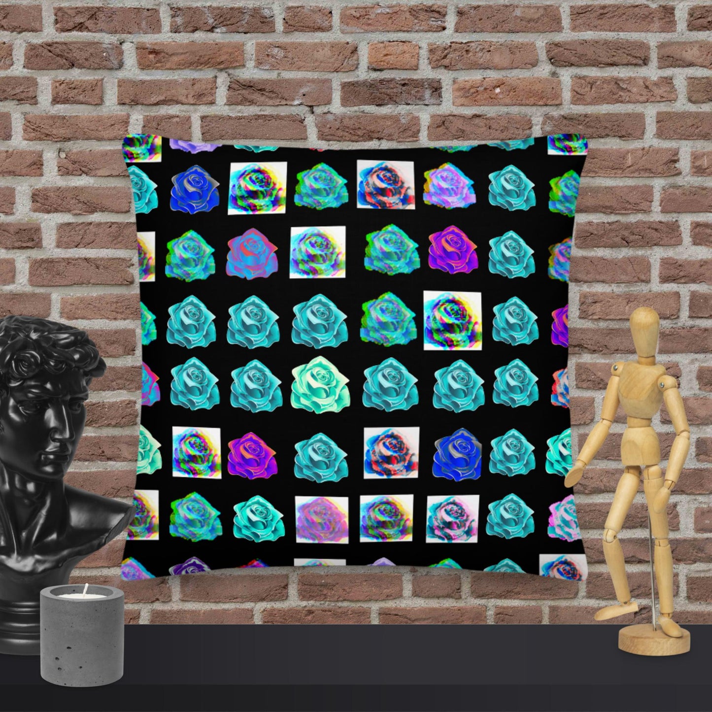 Calmness Designs Rose Blue Flowers,, Premium Pillow