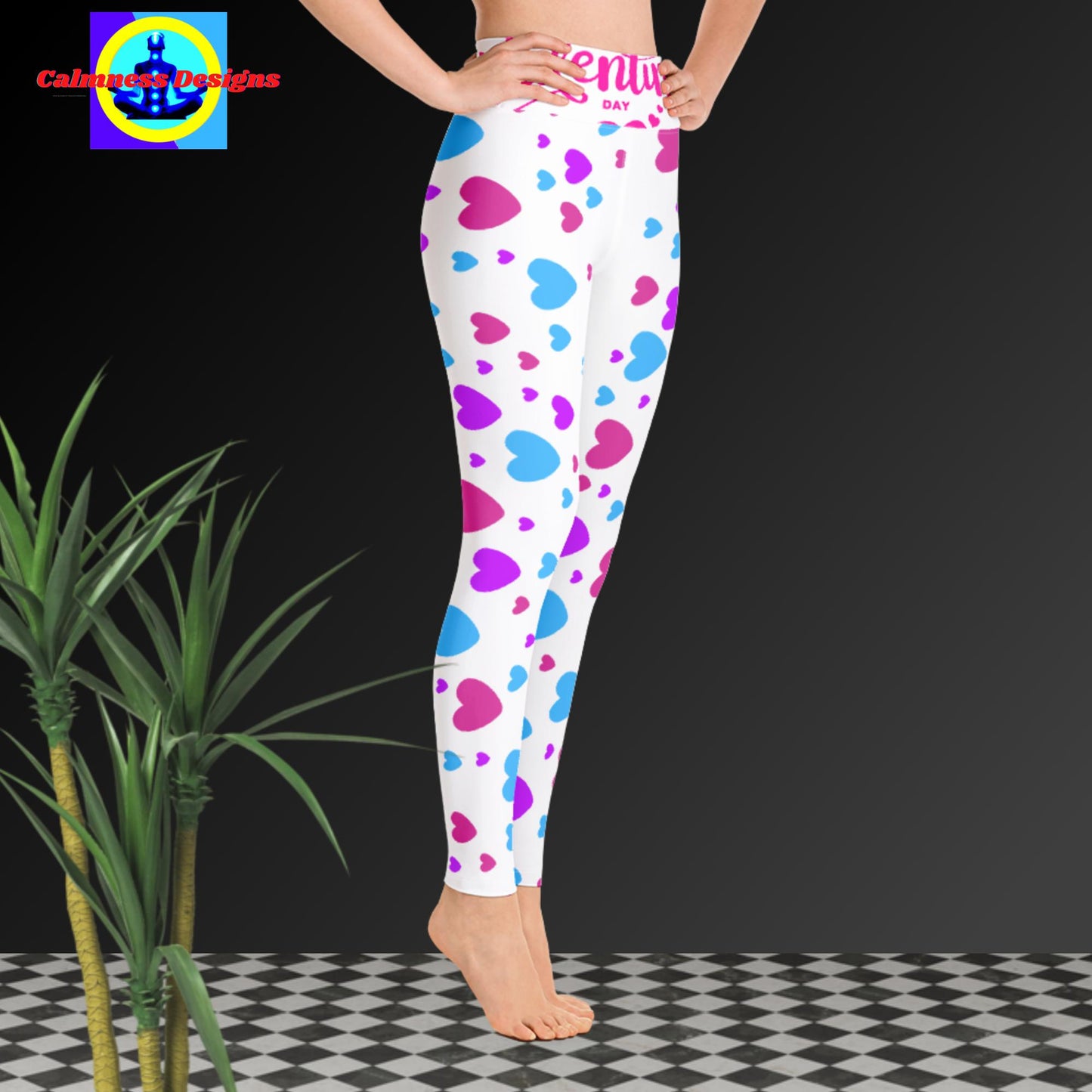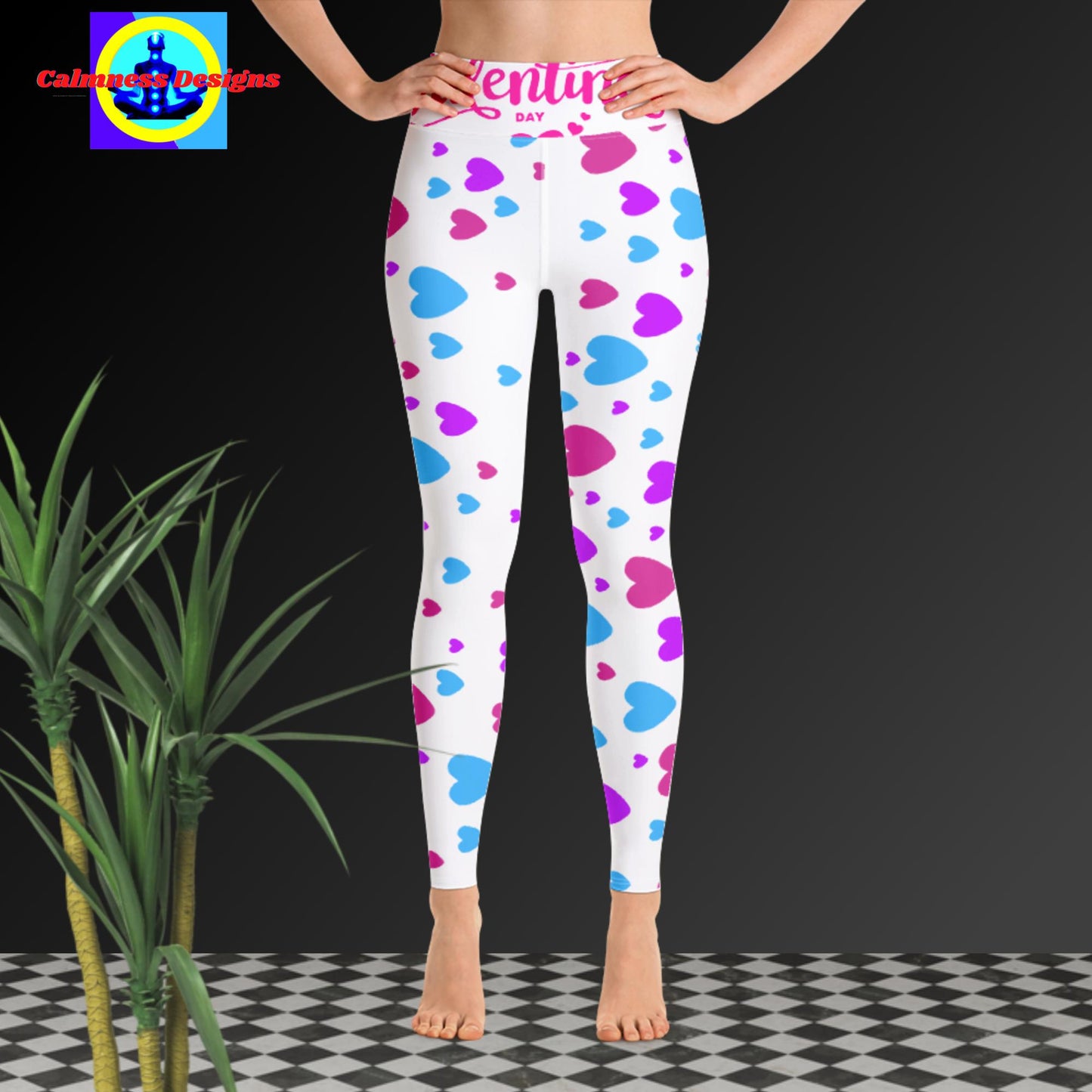 Happy Valentines Day, Hearts, Yoga Leggings