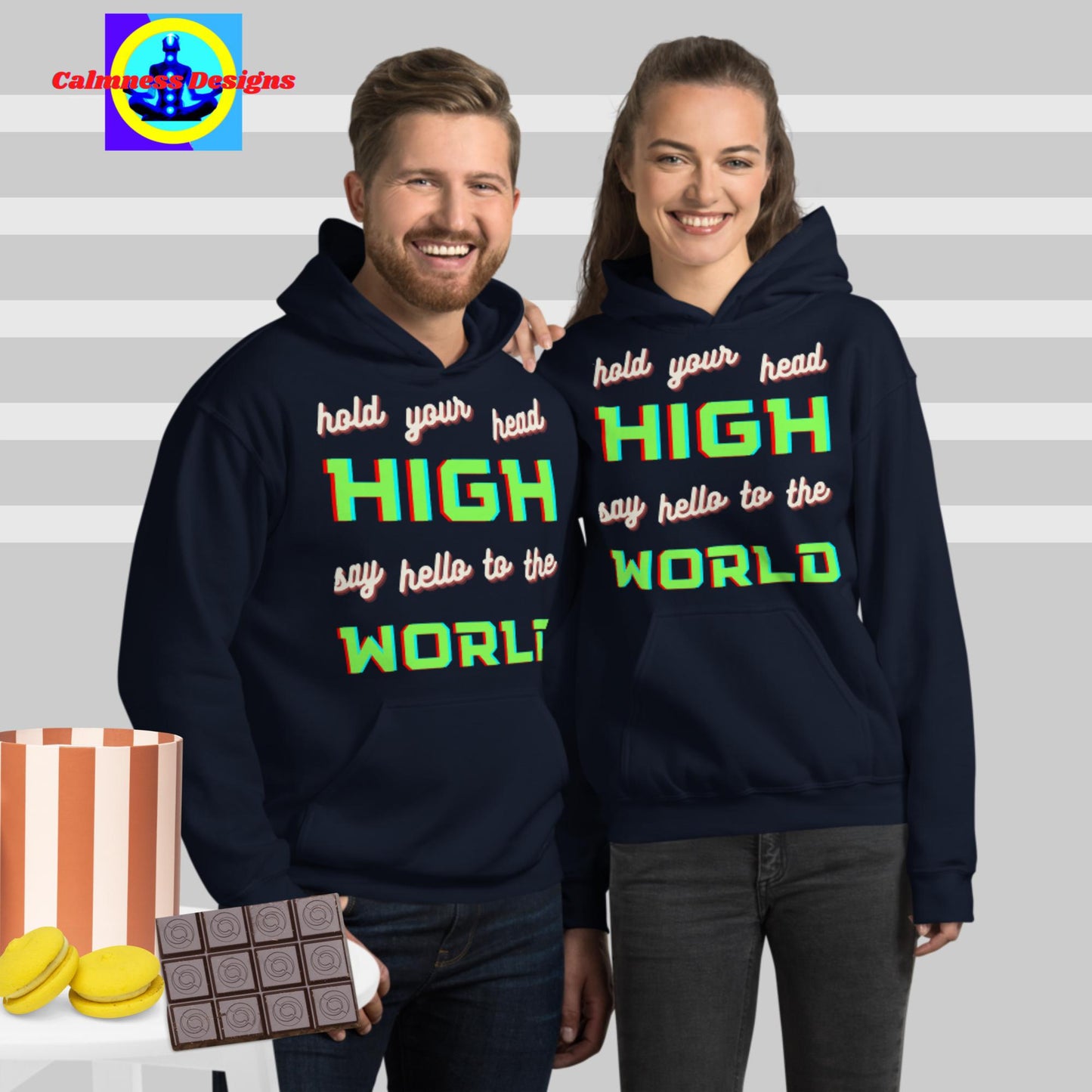 Hold your head HIGH, say hello to the WORLD, Unisex Hoodie