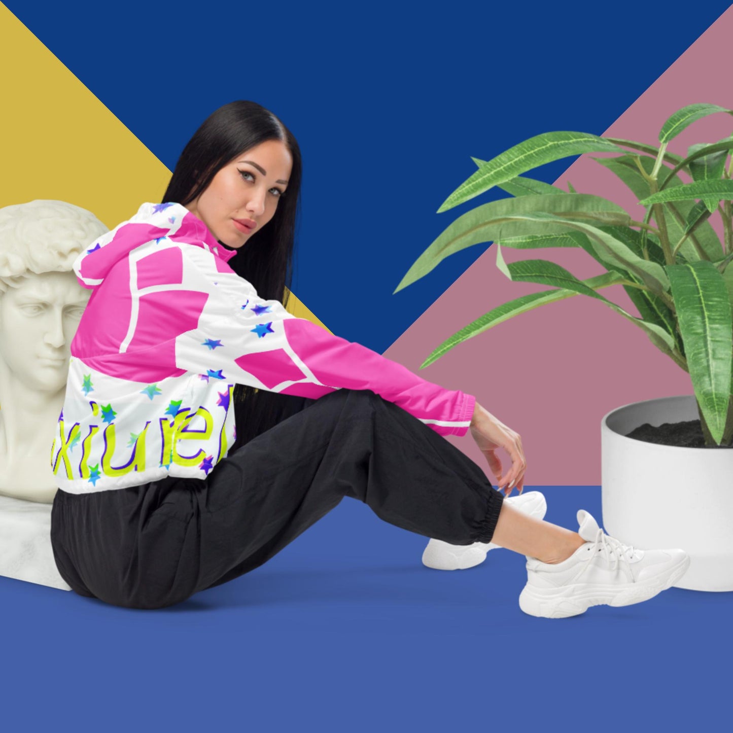 Hike in style without the rain getting in the way—this cropped windbreaker is lightweight, waterproof, and suitable for every kind of adventure. Features include side-slit pockets, breathable mesh lining, and adjustable drawcords on the hood and waist to support all your stylish outdoor looks.