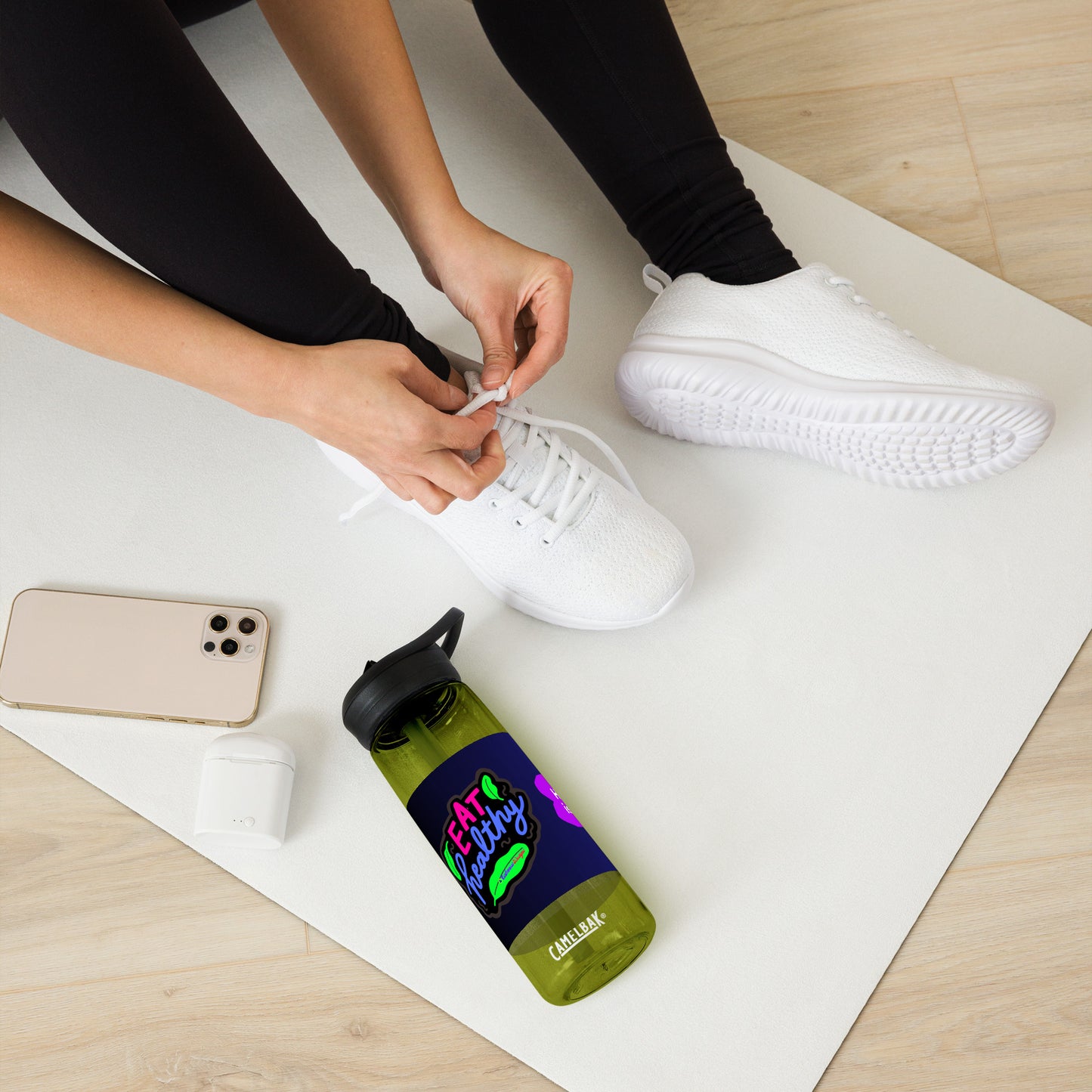 Stay Active, Hand holding Dumbbell, Eat Healthy, Leaves, Health is Wealth, CALMNESS DESIGNS, Creative Designer's, Sports water bottle