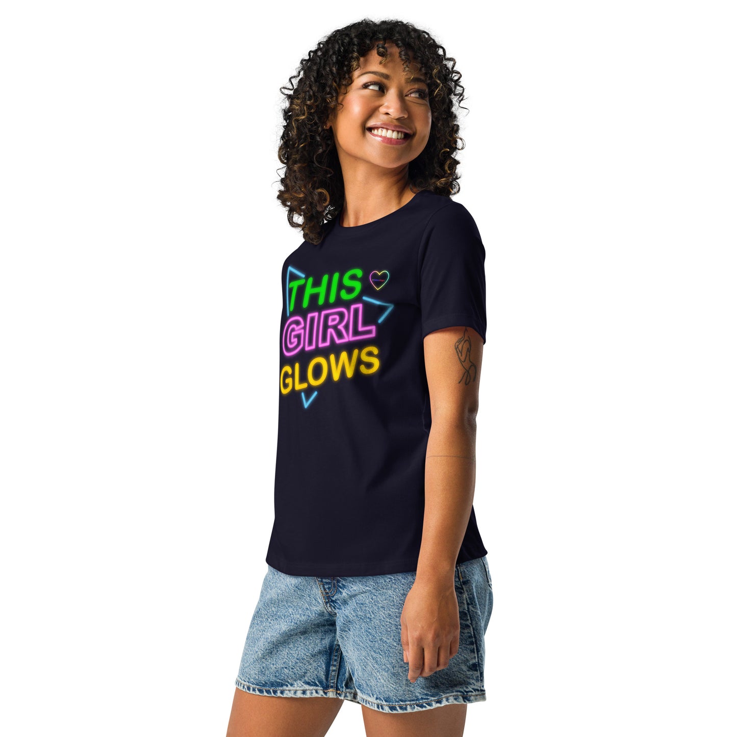 This Girl Glows Neon-Sign, Blue Triangle, CALMNESS DESIGNS, Creative Designer's, Women's Relaxed T-Shirt