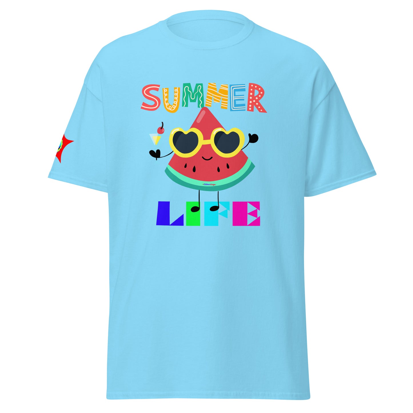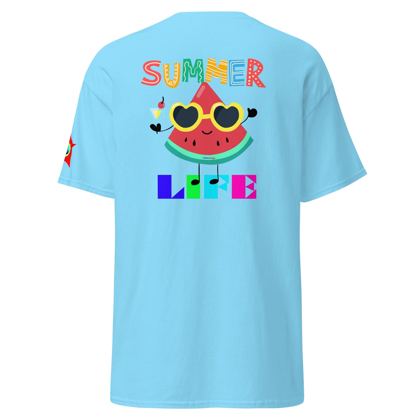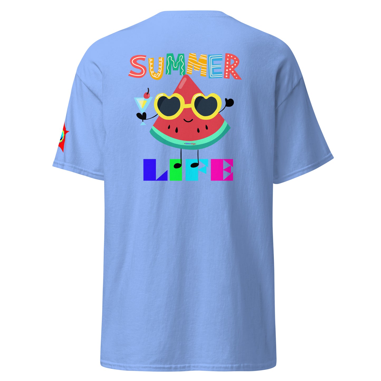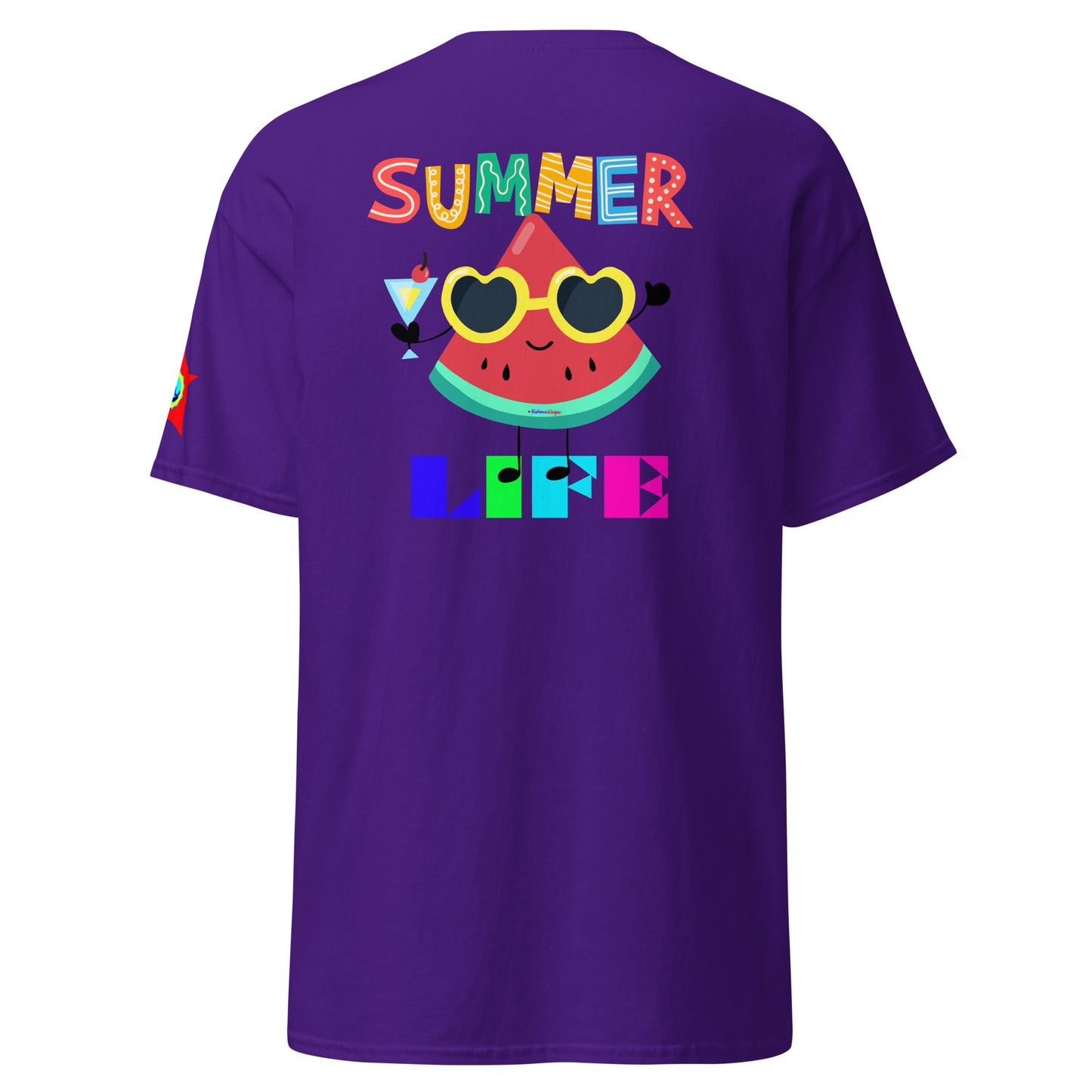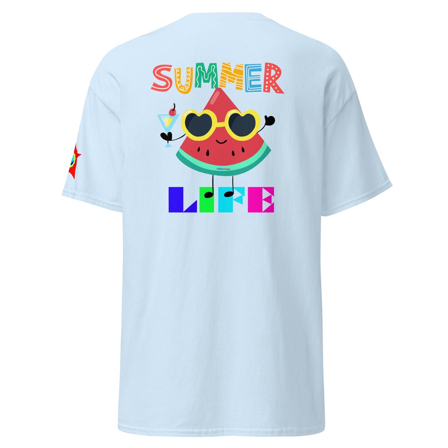 Watermelon Character with Cocktail, Heart-Shape Summer Glass, Summer Life, CALMNESS DESIGNS, Creative Designer's, Unisex classic tee