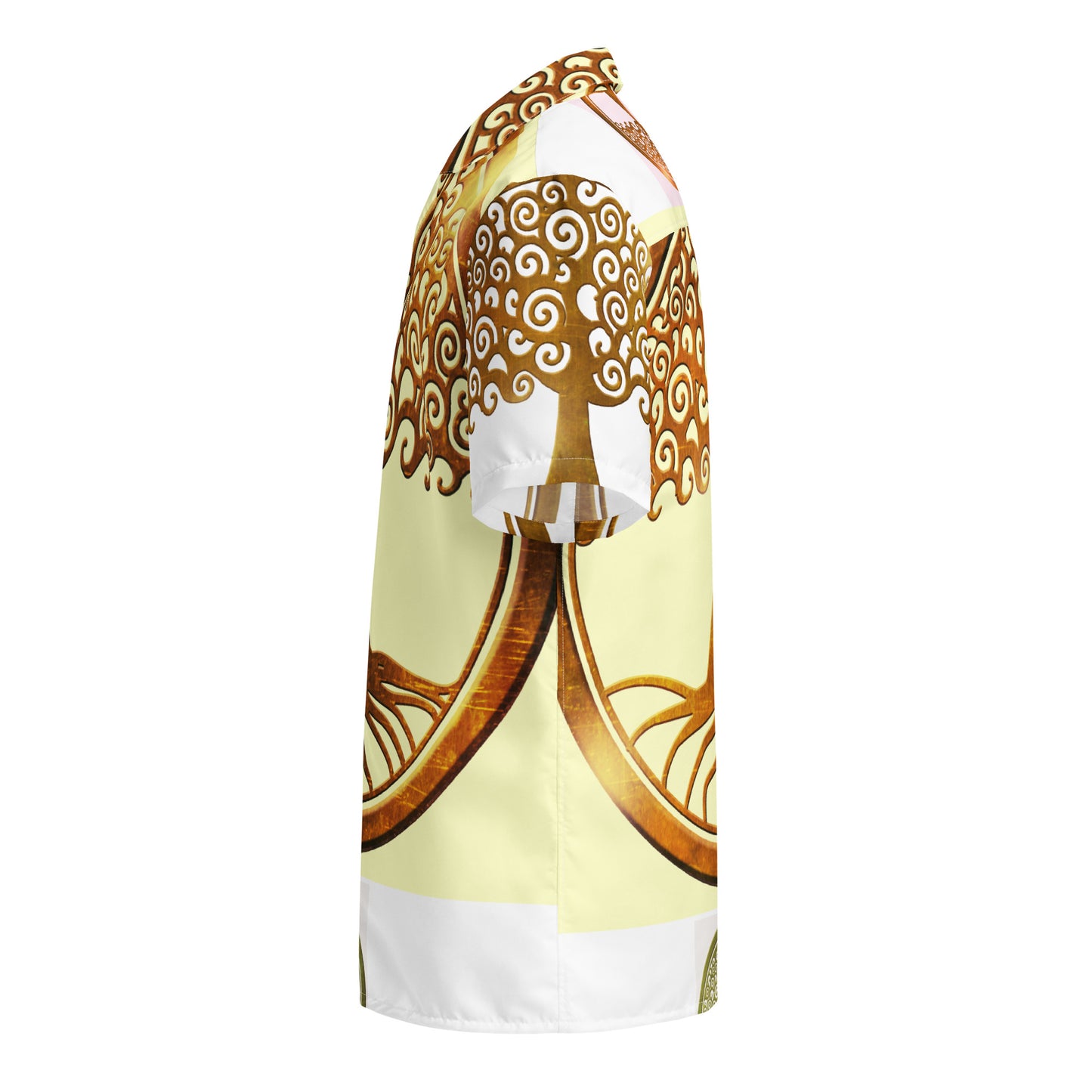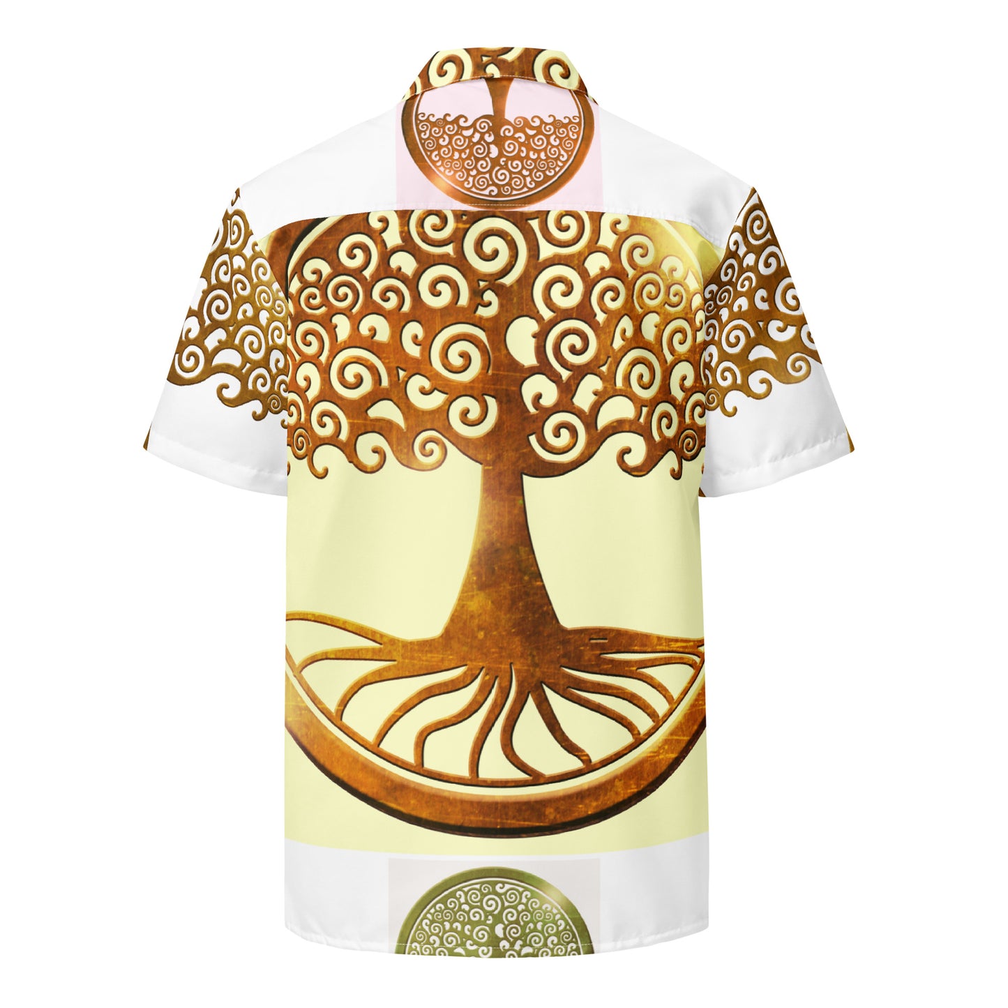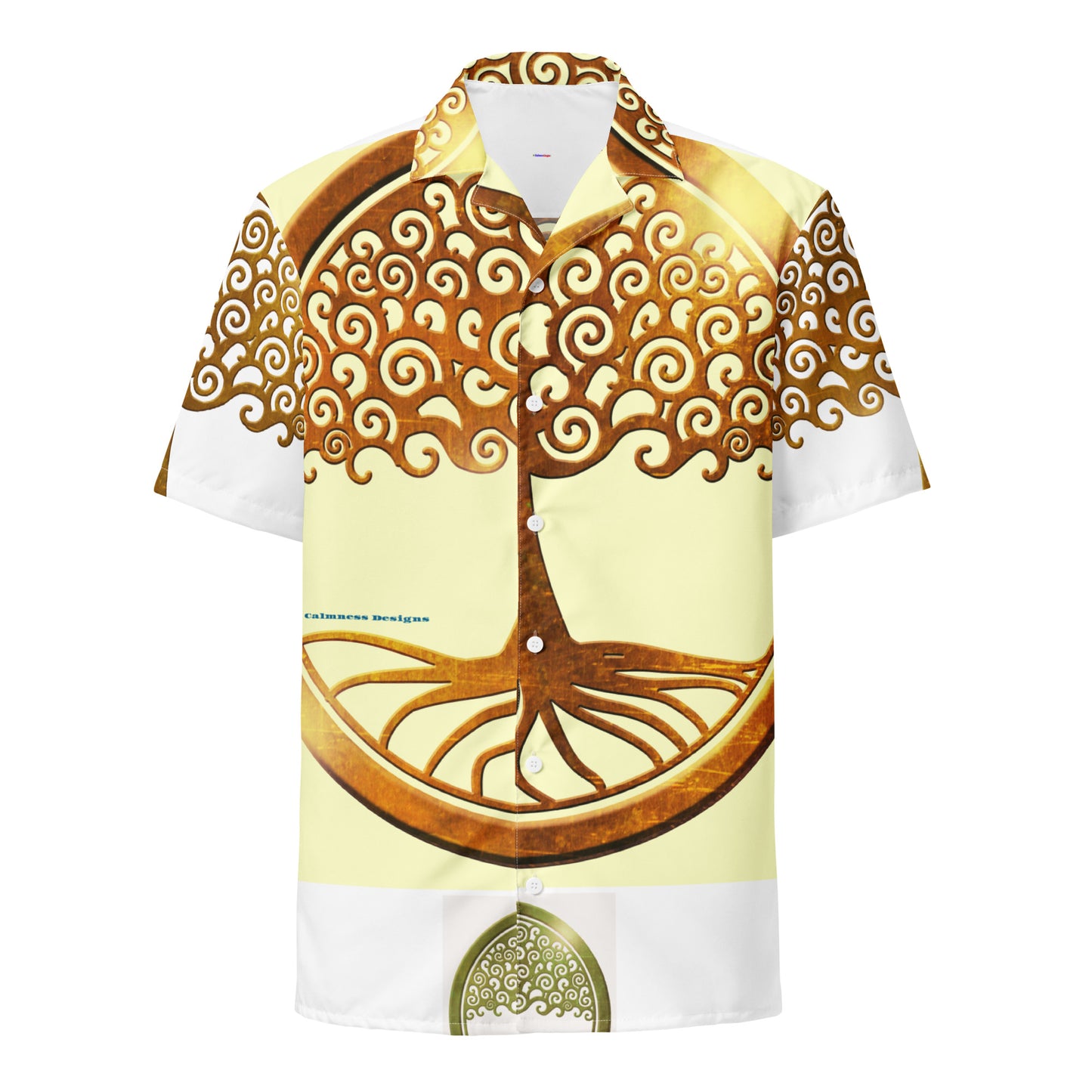 World Life Tree Gold Medallion Pendant, Calmness Designs, Unisex button shirt
