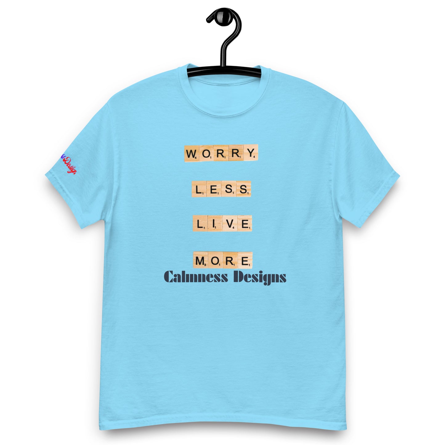 WORRY LESS LIVE MORE, Calmness Designs, Creative Designs, Creative, Genuine, Authentic,Men's classic tee